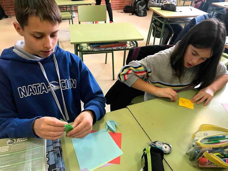 Los estudiantes del IES Río Nora realizaron mil grullas de papel.