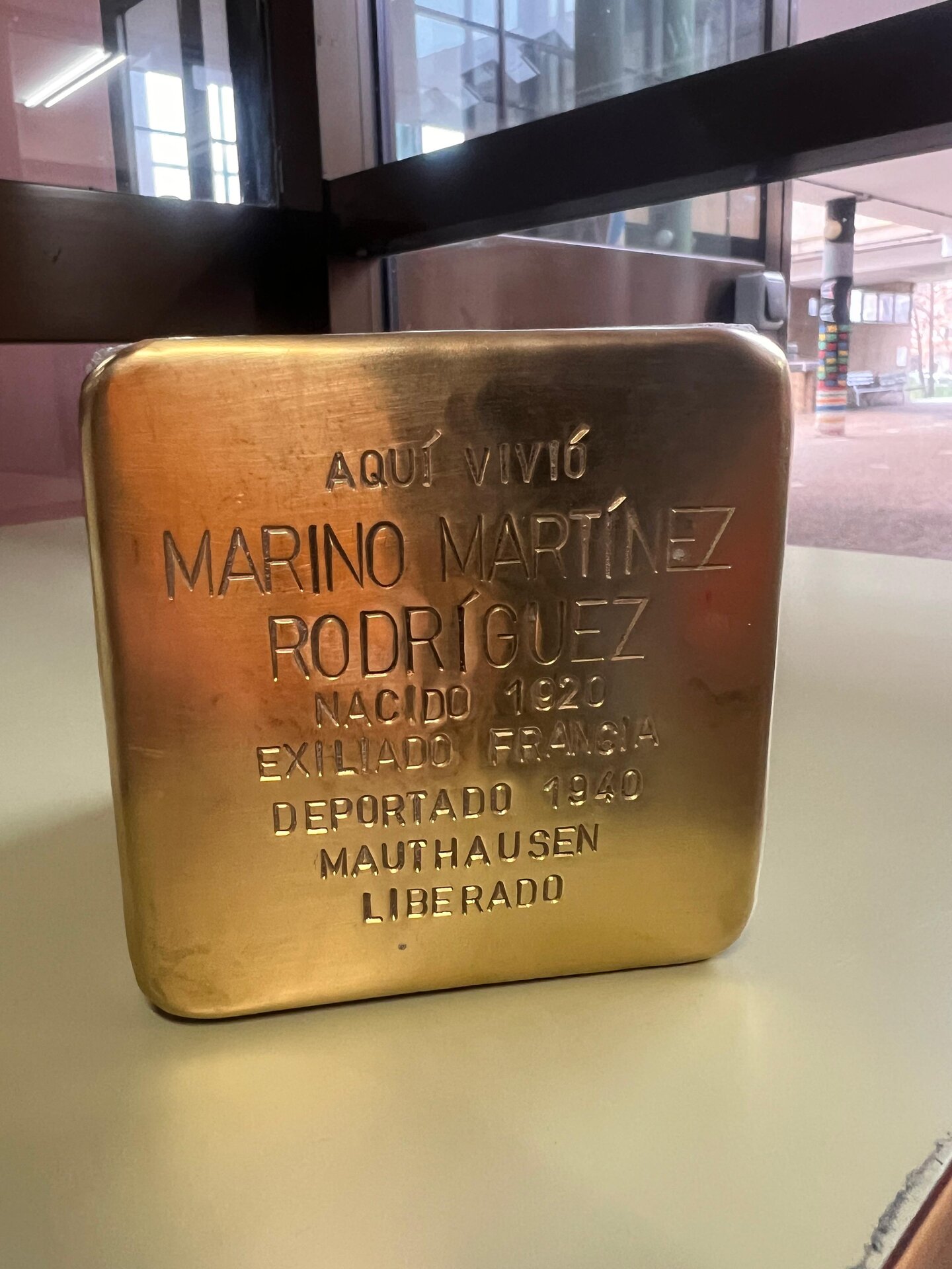 Gunter Demnig es un artista alemán que, a principios de los años 90 colocó la primera stolperstein (traducido del alemán como «piedra contra la que tropiezas») el día que se cumplían 50 años de la orden dada por Heinrich Himmler para iniciar la deportación de gitanos. A partir de esas primera piedra, Demnig inició el Proyecto stolperstein, dedicado a recordar a los asesinados o cautivos por los nazis. El próximo sábado, una de esas piedras estará insertada en Posada de Llanera: la que recuerda a Marino Martínez, llanerense de San Cucao, detenido por las SS el 24 de junio de 1940 en la ciudad francesa de Angulema. Marino fue uno de los pasajeros del Convoy de los 927, un tren con 927 refugiados españoles que fue conducido desde la ciudad francesa hasta el campo de concentración de Mauthausen.