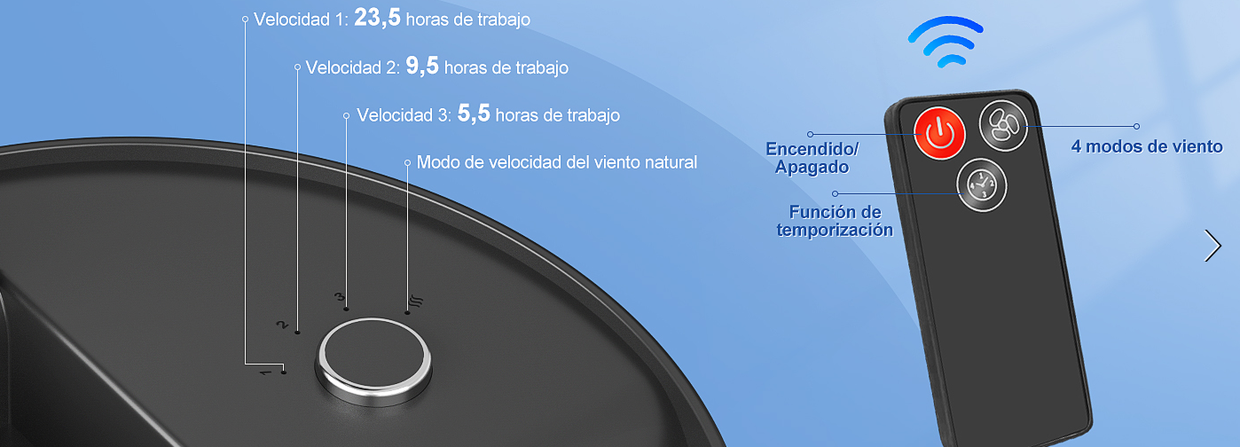 Funciones especiales: El ventilador viene con un mando a distancia que te permite controlarlo a distancia. También es plegable, lo que facilita su transporte y almacenamiento. Además, cuenta con una función de temporizador que te permite programarlo para que se apague automáticamente después de 1 a 4 horas.
