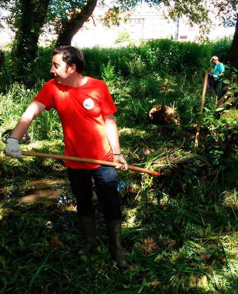 Media docena de personas capitaneadas por el alcalde de Llanera, Gerardo Sanz, y secundado por la teniente de alcalde, Pilar Fernández, los ediles Chema Vega y Consuelo Suárez -ambos de IU- e Isabel Fernández, de Somos, se calzaron las katiuscas para participar en la limpieza del Arroyo el Fondín de Posada de Llanera.