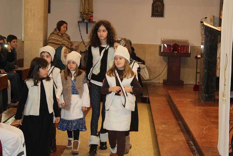 Desde hace unos años los niños de la parroquia vienen participando en esta recreación, implicándoles en este importante día en el que se celebra el nacimiento de Jesús. Comenzaron con una sencilla representación a la que, año a año, van añadiendo nuevas escenas. Nada más finalizar la misa, más larga de lo habitual por la representación, las felicitaciones por parte de sus vecinos no se hicieron esperar.
