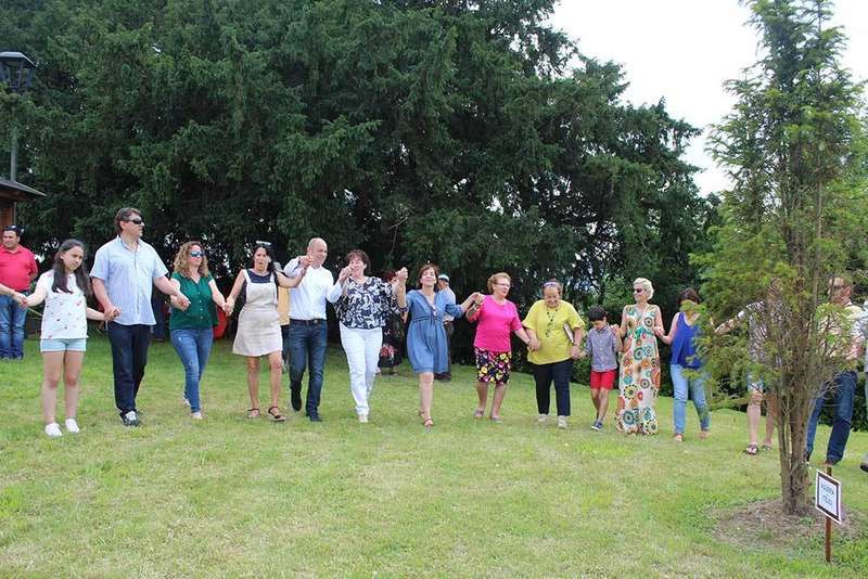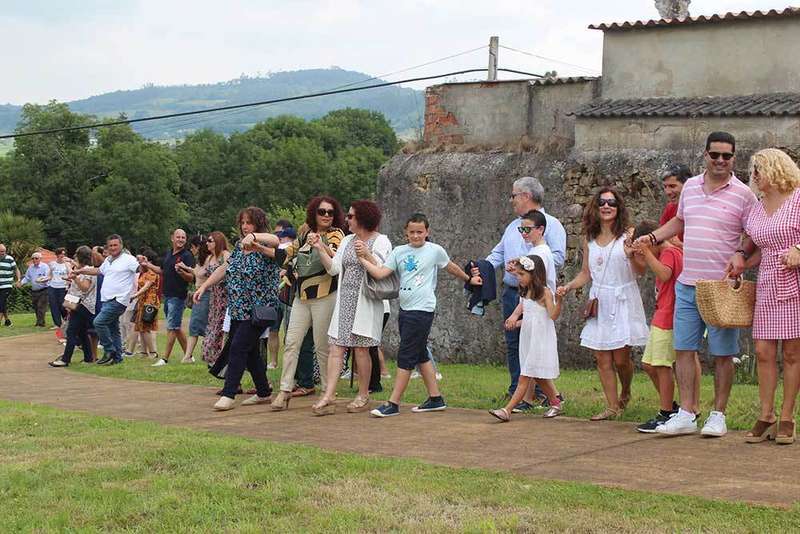 Los vecinos entrelazaron sus manos para bailar la danza prima en torno a los árboles de simbolizan la unión de la parroquia.