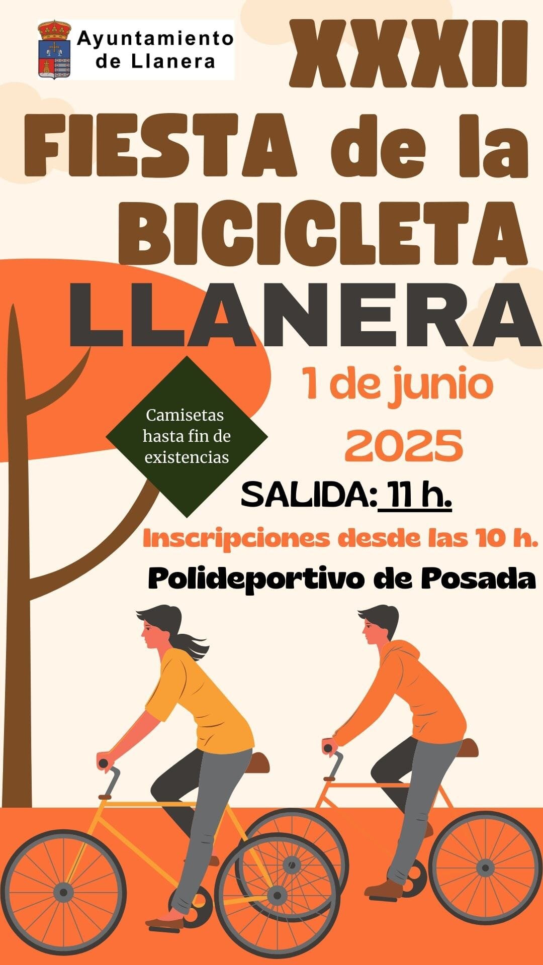 El Ayuntamiento de Llanera, a través de la concejalía de deportes, celebrará este domingo día 1 de junio, la XXXII Fiesta de la Bicicleta. Los interesados en participar podrán inscribirse el mismo día de la prueba en el polideportivo municipal de Posada, de diez de la mañana a once menos diez. La salida está prevista para las once desde el mismo polideportivo de Posada. Al finalizar la ruta se sorteará una bicicleta entre todos los inscritos.