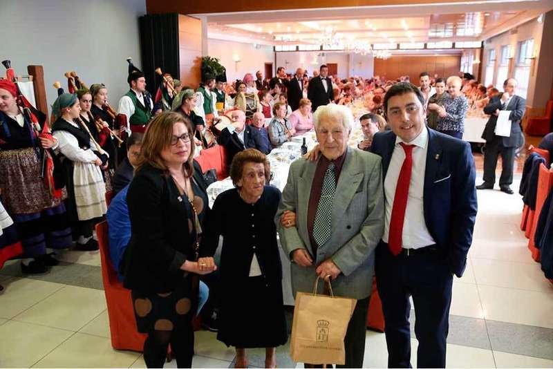 Maruja y Alejandro fueron los llanerenses de más edad que participaron en la popular comida en honor al patrón de la localidad, aunque, en esta jornada también estuvo muy presente la vecina de más edad del municipio, Adelina Flórez Martínez, que el pasado 2 de mayo cumplió 105 años.