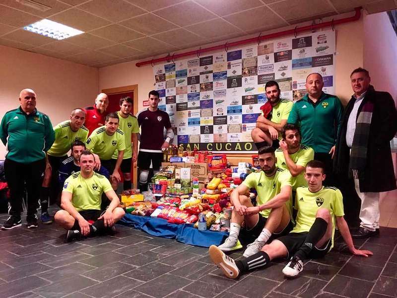 El equipo San Cucao F.S. y la Peña Azul Iris superaron con creces las expectativas puestas en la jornada del deporte solidario que, el pasado sábado, se vivió en Llanera. En total se consiguieron más de 700 kilos de alimentos en la operación kilo, que se entregaron el pasado lunes, a Cáritas Unidad Pastoral Lugo-Posada para que lo reparta entre las personas más necesitadas.