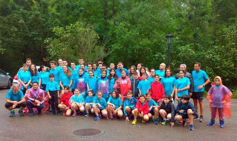 Foto de familia de los deportistas que participaron en la carrera de relevos hasta el Santuario.