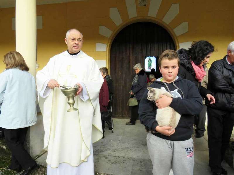 En la localidad llanisca de Parres, cuando se pregunta por el tiempo que hace que se celebra San Antón, todos los oriundos contestan lo mismo: “desde siempre”. La única diferencia es que antes por delante de la iglesia desfilaban buscando la bendición vacas, burros, ovejas o gallinas y, ahora, lo hacen animales como Luna, Coco, Calcetines, Rocky o Triski. Es decir, perros, gatos, conejos…que sus dueños acercan hasta el templo para que el párroco, Florentino Hoyos, les salpique con agua bendita.