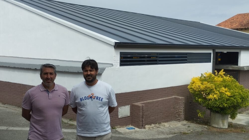 La actuación llevada a cabo por el Ayuntamiento consistió en la sustitución de los paneles previamente existentes en la cubierta, que eran de fibrocemento con amianto; por unos paneles sandwich que se fijaron a la estructura de hormigón armado. Los citados paneles son de chapa de acero con núcleo aislante.