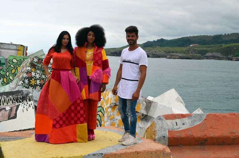 Los Cubos de la Memoria de Llanes, obra de Agustín Ibarrola, fueron hoy viernes la pasarela por la que desfilaron dos modelos ataviadas con diseños de Ágatha Ruiz de la Prada, para la sesión fotográfica con David Jambrina.