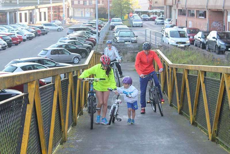 La rampa de la pasarela de las vías del tren, primer esfuerzo para los ciclistas