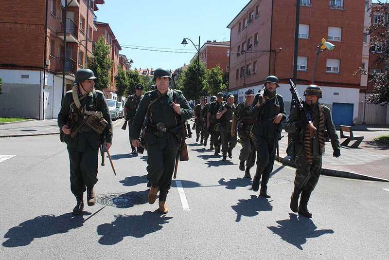 Unas ochenta y cinco personas dan vida a los soldados que integraban los batallones alemanes y americanos de esta contienda (los recreadores procedían de diferentes asociaciones del norte del país: País Vasco, Galicia y Madrid). Los dos bandos están muy compensados e invitan al público, muy interesado por esta puesta en escena, a trasladarse a los años 40 del siglo pasado.