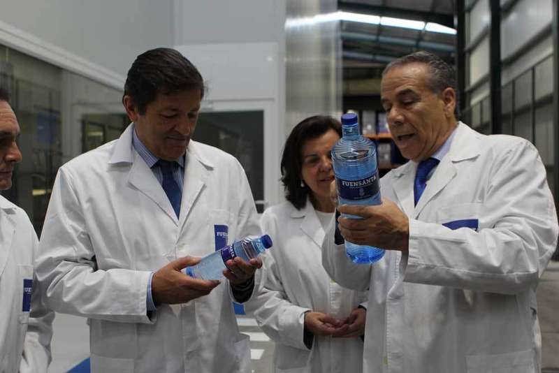 El presidente de Aguas de Fuensanta, José Luis Fernández Martín-Caro, guió a las autoridades durante el recorrido por la planta donde pudieron ver la nueva máquina de fabricación de envases PET (Polietileno de Tereftalato, comúnmente conocido como plástico) que permite producir 22.500 botellas por hora y sitúa a la empresa en la primera línea de envasado de PET (plástico) a nivel mundial.