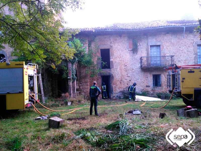 Esta mañana se declaraba un incendio en el Palacio de La Cogolla, en el término municipal de Nava, que extinguían efectivos de Bomberos del Servicio de Emergencias del Principado de Asturias (SEPA), con base en el parque de Piloña.