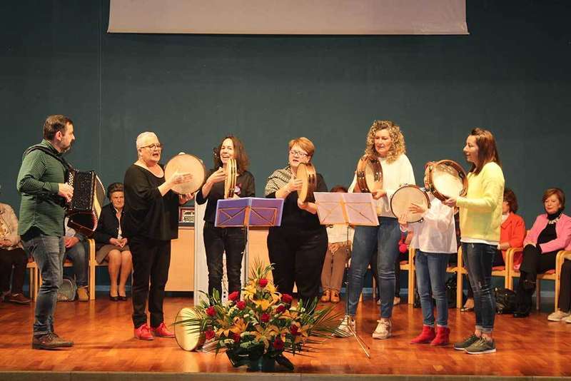 Algunos de los componentes del grupo de pandereteres se sumó al merecido homenaje.