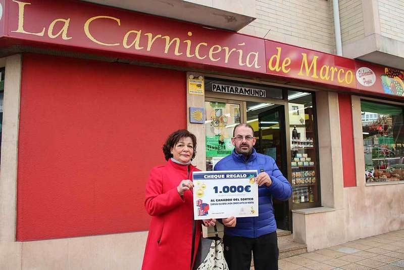 Ayer jueves, Adelina recogió de manos de Marco Casas, de la Carnicería Marco (establecimiento que entregó la papeleta ganadora) el premio.