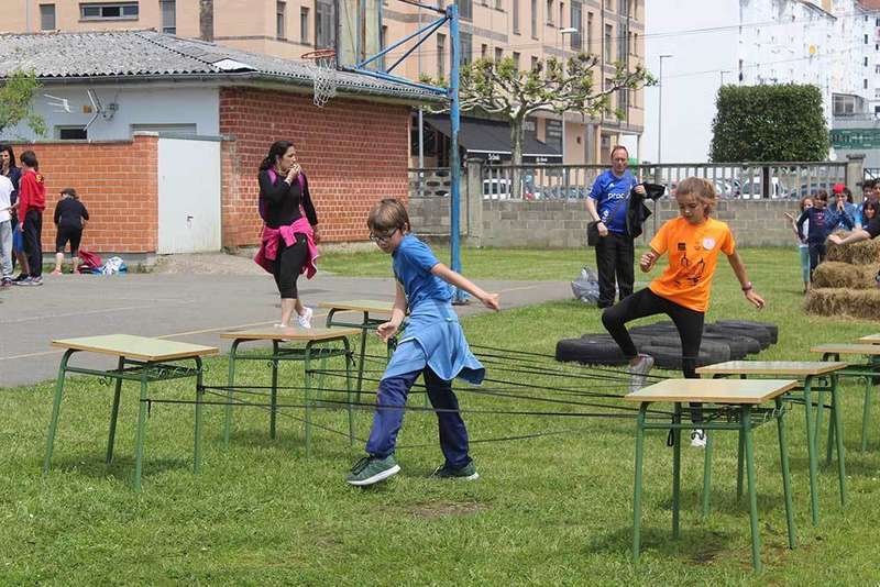 Uniformados con camisetas de colores, acorde con el equipo que integraban, los alumnos se turnaron por cada uno de los juegos: pista americana, juego de pañuelos, zumba, pichi-estilo beisbol pero con el pie-, carrera de relevos o el guardian, entre otros. «Los juegos están adaptados a las diferentes edades y a la capacidad de los niños», explicó el director del Centro, Daniel García, quien puntualizó que se trató de «una jornada en el que se potencia la práctica del deporte en equipo dejando de lado la competición».