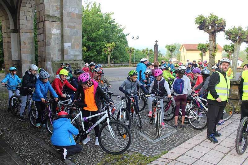 La gran mayoría de los ciclistas se animaron a salir del campo de la iglesia parroquial Santa María, primer punto de encuentro para los estudiantes y los padres que quisieron acompañar a los escolares en la ruta ciclista.