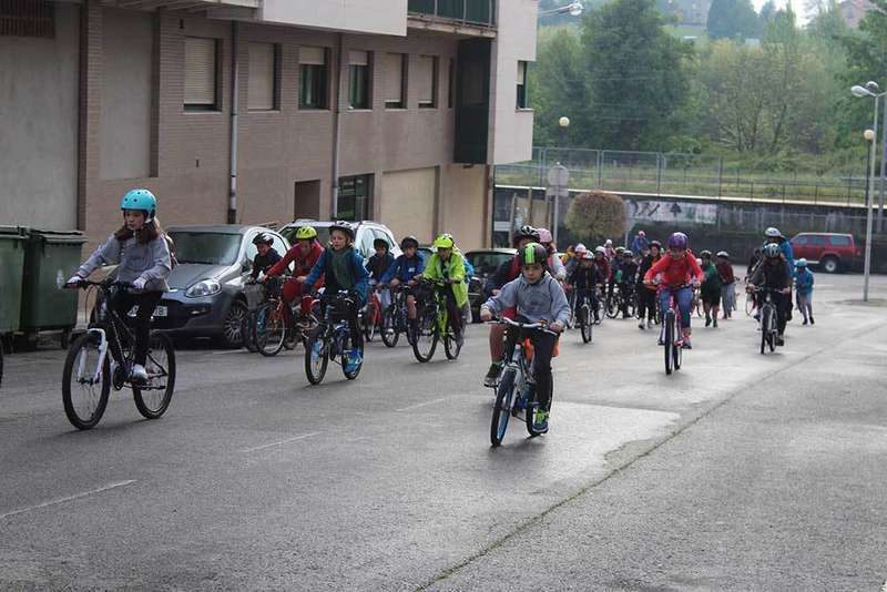 Con su bicicleta, el casco, y la gran mayoría de los estudiantes con sus mochilas a la espalda, siguieron al profesor, David Maylin. Por delante, casi tres kilómetros que realizaron sin darse cuenta. “Al cole en bici” es una iniciativa que se puso en marcha hoy viernes con un claro objetivo: «concienciar a todos los usuarios de la vía que la bicicleta es un vehículo más, un medio ecológico, sano y barato», reivindicó Maylin.