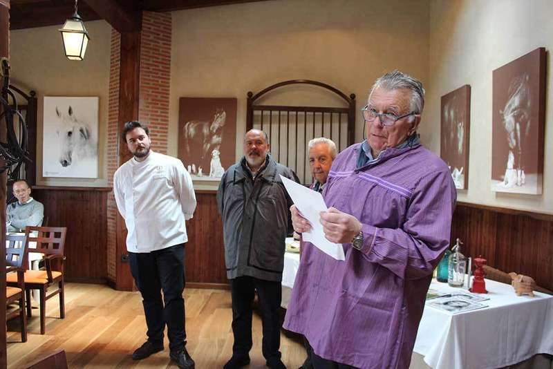 El Cronista Oficial de Noreña y miembro del jurado, Miguel Ángel Fuente, antes de disfrutar de la pitanza preparada para la ocasión -con gran presencia del gochu en los platos- convocó los Premios Porcófilos 2020.