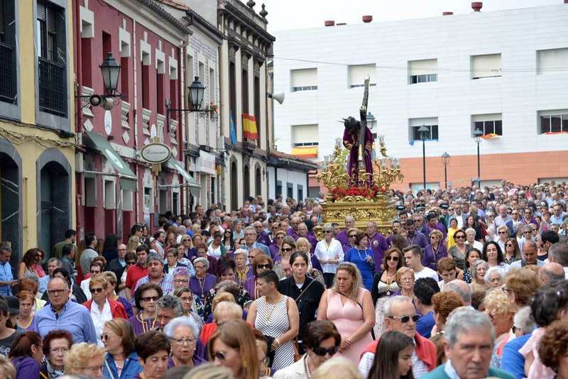 Centenares de personas acompañaron hoy al Cristo del Ecce Homo en su regreso desde la iglesia parroquial de Santa María hasta la capilla de La Soledad en el día grande de las fiestas de Noreña. La jornada comenzó con la misa y continuó con la multitudinaria procesión. Nuevamente, como sucedió en la bajada de la imagen el pasado día 5, el recorrido se hizo con recogimiento y con el rezo del Vía Crucis. Y como marca la tradición, al llegar a lo alto de la calle de la Iglesia, la procesión se detuvo para dar lugar a la traca que anunció la llegada de la imagen al centro de la villa. La siguiente parada se produjo delante del quiosco de la música, donde sonó el himno nacional a cargo de la Banda. Y por último, en la capilla se lanzaron una docena de voladores para anunciar la llegada del Cristo y se soltaron, por segundo año consecutivo, palomas como símbolo de la paz. Por su parte, la Banda Gaites de Noreña interpretó el himno de Asturias.