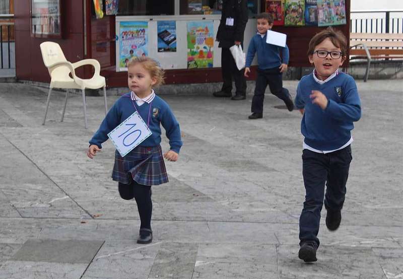 El alumnado de Infantil del Colegio Nuestra Señora de Covadonga de Noreña corrió contra la violencia de género. La Plaza Eulalia del Busto, próxima al Centro escolar, se convirtió en un improvisado circuito para la primera carrera infantil con la que sensibilizar a los escolares de menos edad con esta causa.