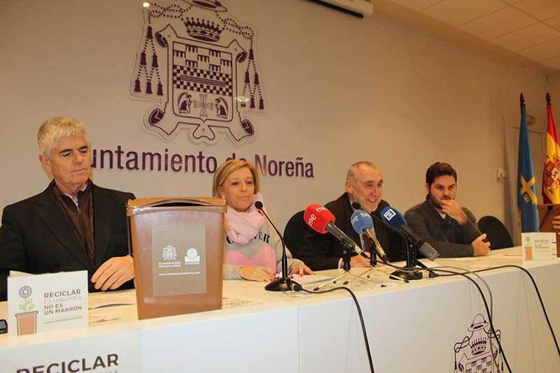 “Ni un hogar sin reciclar la orgánica” es el lema de la tercera fase de la campaña de implantación del nuevo contenedor marrón que se pone en marcha en Noreña y que, hoy jueves, se presentó en la Casa de Cultura Severo Ochoa, con la presencia de la alcaldesa de Noreña, Amparo Antuña; el viceconsejero de Medio Ambiente, Benigno Fernández Fano, el gerente de Cogersa (patrocinador de la campaña), Santiago Fernández y el concejal de Obras y Medio Ambiente, Pelayo Suárez.