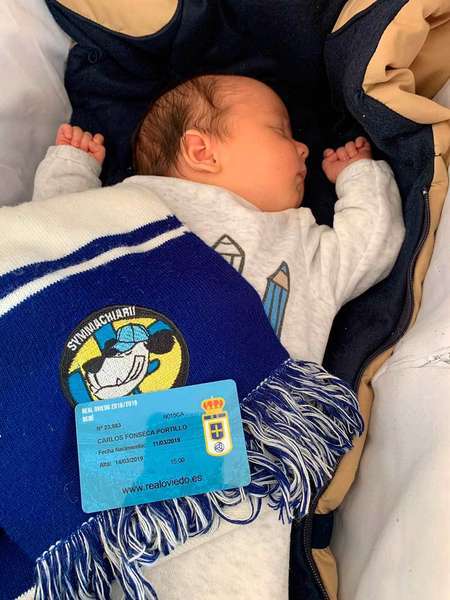 El Real Oviedo suma un socio más para el clásico derbi que le enfrenta, hoy domingo en el Molinón, al Real Sporting. El pequeño Carlos Fonseca Portillo, de tan solo trece días y vecino de Noreña, es el socio más pequeño del equipo carbayón.