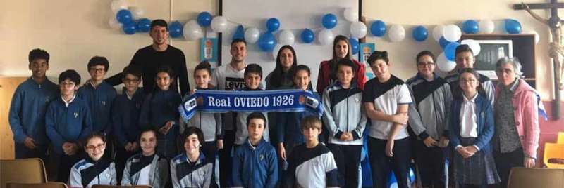 Además de varios presentes, entre ellos un libro del concejo, los jugadores se llevaron el cariño de los jóvenes oviedistas del Centro.