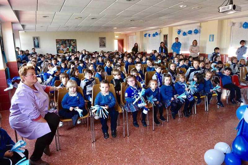 Los jugadores posaron con los estudiantes de 5º y 6º de Primaria.