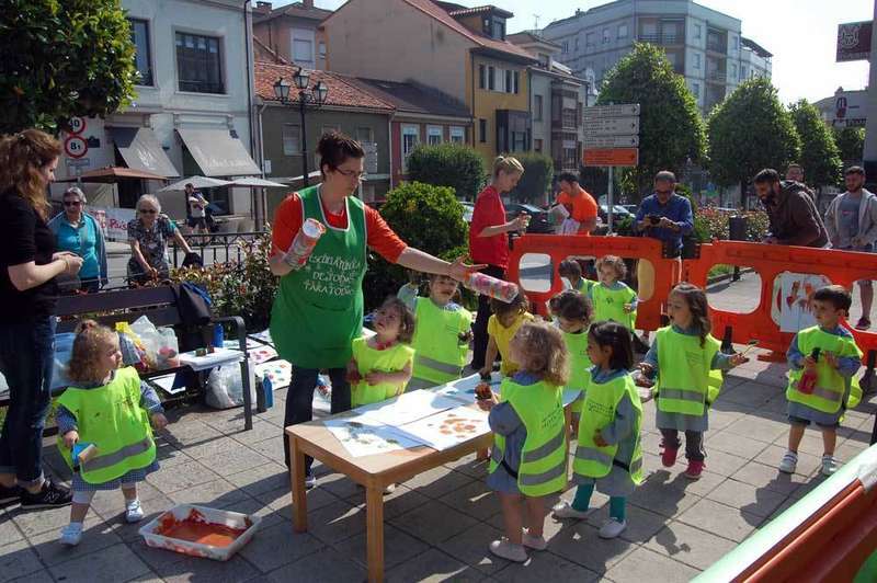 Los Jardines del Ayuntamiento noreñense se convirtieron en un improvisado estudio de arte en el que los niños de 2 a 3 años, de la Escuela Infantil de Noreña fueron pintores por unas horas.