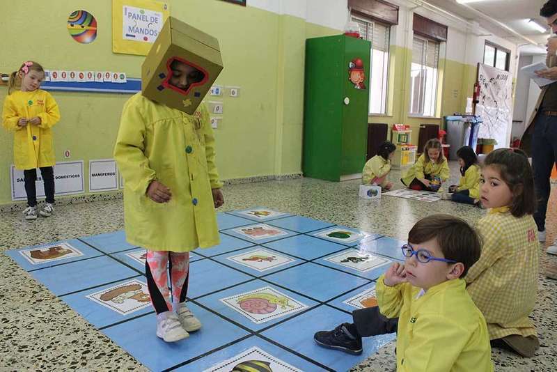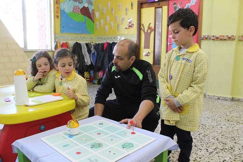 «Con los niños de Infantil trabajamos desde el sistema analógico hasta el de robots propiamente adquiridos», señala el jefe de estudios, Indalecio Santos. En este rincón se trabaja de la forma más simple a las más compleja; desde el robot de carne y hueso a dos tipos diferentes de robots «una más simple y otro un poco más avanzado, que también utilizamos para los alumnos del primer ciclo de primaria», explica Santos.