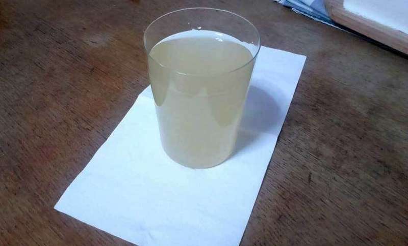 Casi tres años después de haberse licitado el proyecto, las obras siguen sin concluir y los problemas con el agua continúan en muchos barrios de la capital del concejo parragués, donde hoy, en muchos hogares, de zonas como Arriondas Norte o el popular "Tocote", el agua que manaba de los grifos era del color que se puede ver en la imagen.