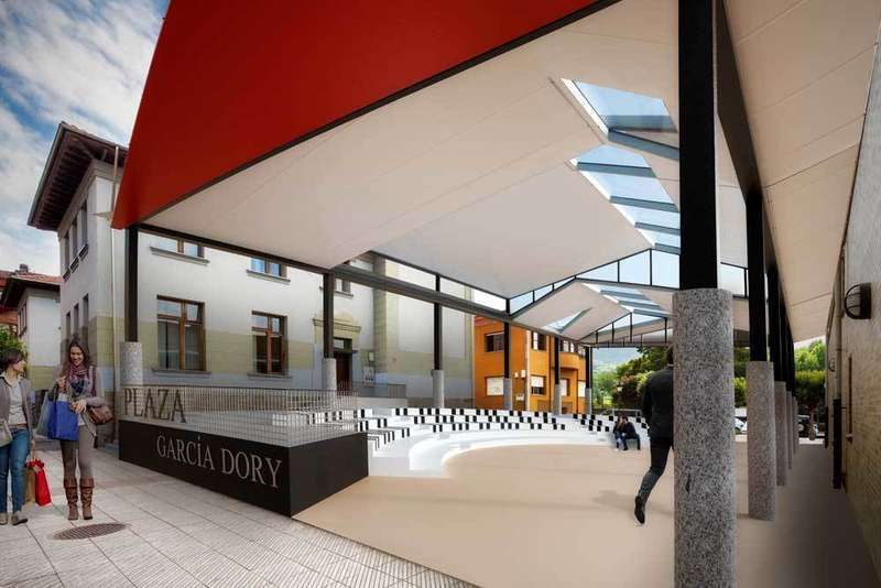 Por su parte José Miguel Cinos, arquitecto responsable del proyecto, afirmó que para diseñar la nueva plaza tuvo muy en cuenta la luz y las sombras de la misma, ya que es una plaza situada entre edificios importantes pero que la cierran y la esconden, por lo que el techo llevará una cubierta transparente, hecha de Zinc Natural, que aportará brillo, pensada así para captar el máximo posible de luz solar en invierno y verano, además de para resaltar desde dentro las vistas a los Picos de Europa o el verde de los alrededores. El espacio interior de la plaza también será modulado, nivelando el suelo para crear dos niveles accesibles: un escenario y una grada con forma de anfiteatro con capacidad para más de 200 personas. Además se colocarán columnas que separarán la zona de ocio de la zona de tránsito peatonal. “Se le ha hecho a García Dory un traje a medida” aseguró el arquitecto, “el diseño final refleja las consideraciones de aquellos que usarán este espacio”.