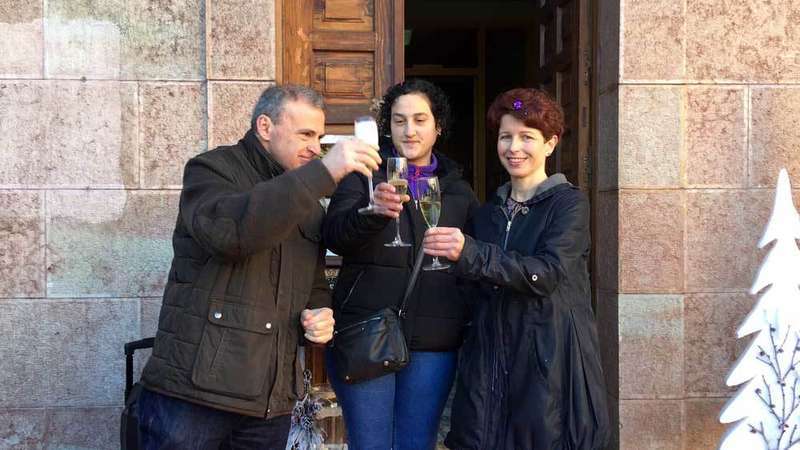 La presidenta del colectivo, Fide Fernández, y el alcalde de Parres, Emilio García Longo, brindaron con la agraciada y la acompañaron para facilitarle las compras.