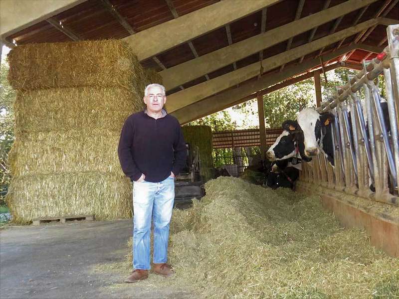Este veterinario parragués, que ejerció durante más de treinta años en la Comarca, decidió en el año 2012 dar un vuelco a su vida laboral y convertirse en ganadero. Una «aventura muy personal» que emprendió por amor a estos animales y porque quería gozar de cierta estabilidad horaria, algo que el trabajo de veterinario no le permitía. Tras levantar una gran nave abierta, y con el apoyo del plan LEADER del Oriente, adquirió el primer robot de ordeño, una apuesta fuerte por la tecnología en el sector ganadero que le ayudó en sus comienzos para atender las necesidades de las 70 vacas con la que empezó. En 2015, y gracias a un plan de mejora de la Consejería del Principado, adquirió el segundo robot de ordeño, lo que le permitió duplicar el número de animales de su granja, donde ahora conviven 150 vacas de leche de la raza frisona. De estas, se ordeñan diariamente 130, y cada una de ellas produce 38 litros al día, dando lugar a una producción anual de 1.700.000 litros de leche al año. Una leche que Juan Carlos vende a mantequerías Arias y que se procesa, íntegra, aquí en Asturias.