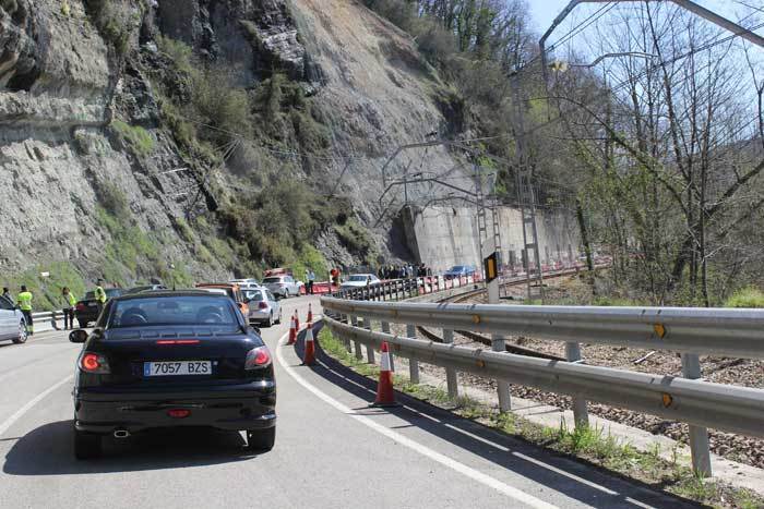 La carretera Nacional se cortó el 7 de febrero a causa de un espectacular argayu que afectó tanto a la Nacional como a la vía del tren que discurre en paralelo. Una vez se han llevado a cabo las tareas para sustentar la ladera que se vino abajo, el Ministerio de Fomento ha decidido abrir el paso al tráfico, pero mientras se construye el falso túnel habrá sólo un carril utilizable.