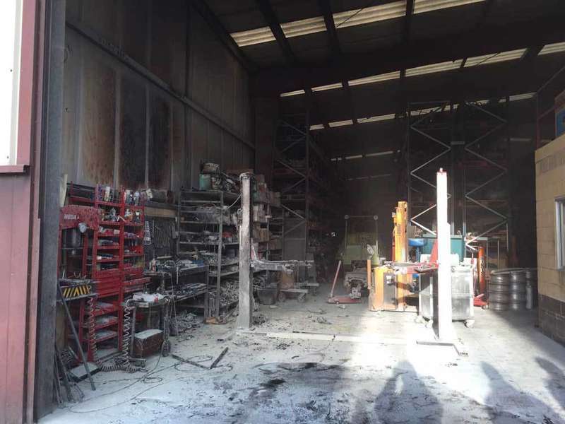 Los propietarios del desguace en el que comenzó el fuego consiguieron sacar el vehículo al exterior de la nave antes de que llegaran los bomberos, pero uno de ellos, cuya identidad responde a las iniciales A. S. G., resultó herido al sufrir quemaduras de segundo grado.