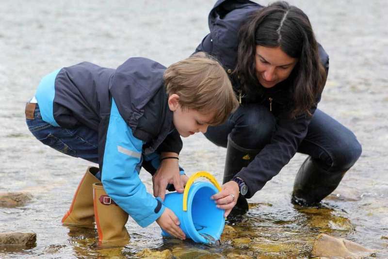 La suelta del lunes es la que de manera anual hace El Esmerillón junto con el centro educativo de Arriondas. El lunes fueron los alumnos de tercero del ciclo de Infantil y los alumnos de tercero de Primaria, alrededor de 80 en total –pertrechados con botas de agua y calderos–, los que se encargaron de depositar en las aguas del Sella, a la altura de la Dehesa –donde están las instalaciones de la empresa Cangas Aventura– a los alevines de trucha.