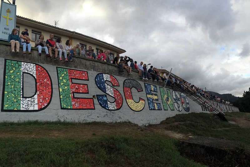 Un centenar de Selleros se juntaron el viernes en el muro sobre el que discurre el Paseo Dionisio de la Huerta, en Arriondas, para inaugurar el mural del 80º Descenso Internacional del Sella, ideado por Agustín Aramburu y que se ha llevado a cabo con la "mano de obra" de todos aquellos voluntarios que quisieron colocar trozos de azulejos para formar la leyenda "80 Descenso Internacional del Sella".