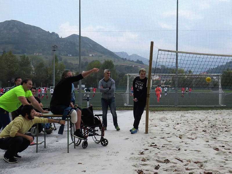 Mientras las pelotas de baloncesto, bádminton y ping pong no paraban de rodar en el interior del pabellón deportivo y en una esquina del mismo un grupo de personas practicaban esgrima adaptado, en la cancha de arena exterior David Fernández Fernández, campeón de España de lanzamiento de peso adaptado, explicaba a otro grupo de gente la manera de lanzar la bola, de 4 kilos de peso, desde una silla fija en el suelo. Una modalidad deportiva que practica desde el año 2014 y en la que consigue lanzar a una distancia de más de 11 metros. Las personas congregadas para ver su demostración intentaron copiarle, algunos con más destreza que otros, pero todos sorprendidos de lo difícil que es darle impulso a la bola sin poder utilizar las piernas para añadirle fuerza al lanzamiento.