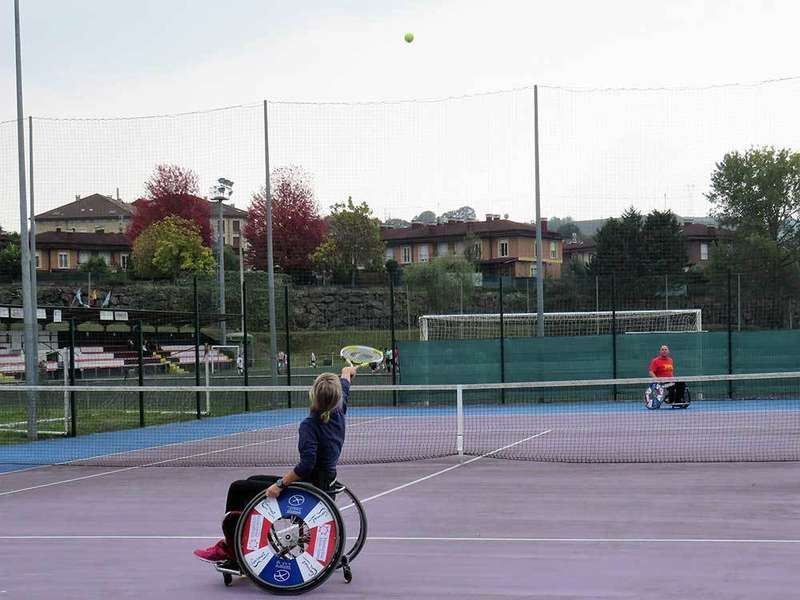 Unos metros más atrás de donde David impartía su clase, los niños de la escuela de futbol de Arriondas probaban una “Handbike”, una bicicleta que se mueve, se dirige y se frena con los brazos, una opción que otorga gran libertad para moverse de forma independiente a las personas con discapacidad y que resultó ser un vehículo muy popular entre pequeños y mayores. Un poco más lejos de allí, en las canchas de tenis, varias personas intentaban perseguir la pelota y acertar a darle con la raqueta a la vez que se desplazaban por la pista en sillas de ruedas.