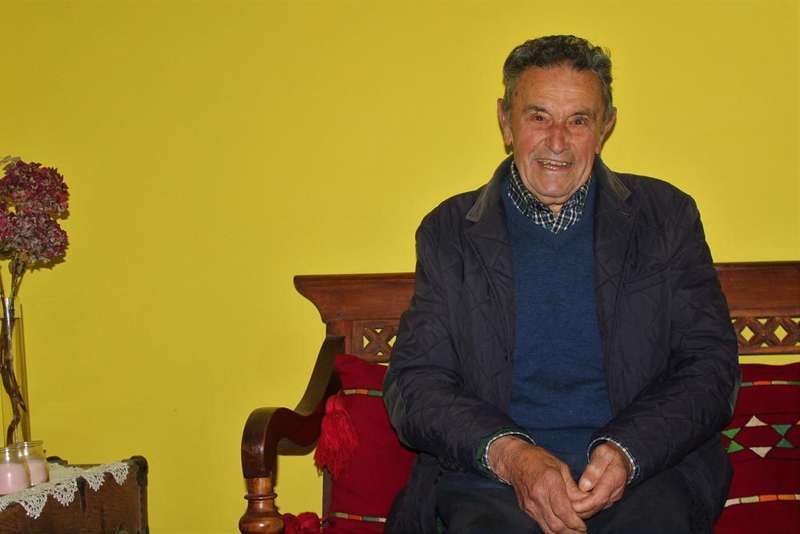 Unas casas más allá, Armando nos recibe “guarecíu del agua en casa”. Tiene 87 años y nació y vivió siempre en Huexes. Compaginó el oficio de la construcción con el de ganaderu y agricultor y, con eso, muchos esfuerzos y la ayuda de su mujer, María Jesús, criaron dos hijos y vivieron su vida. Ahora vive en casa de su hija, Felicidad, puerta con puerta de la casa que le vio nacer, y disfruta cuidando de les gallines, recorriendo Huexes en largos paseos o bajando a Arriondas a comprar y alternar: “Gustami bajar por la mañana, nunca por la tarde. Los sábados bajo al mercau y los domingos, si puedo, también bajo. A controlar” bromea, aunque es un hombre de pocas palabras y gran timidez. El reconocimiento de Paisano del Añu, dice, “me da apuru”, argumentando que hay muchos que lo merecen más que él.