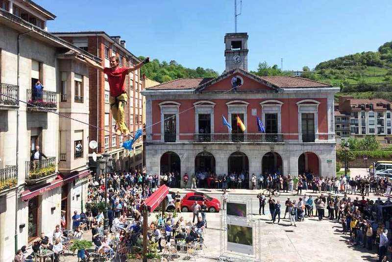Alexander Schulz en la cuerda floja en Infiesto