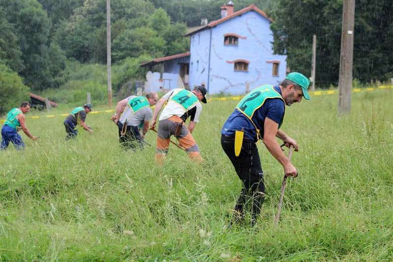 Antes de comenzar la labor de la siega, los participantes tuvieron 30 minutos para cabruñar, una tarea que fue supervisada por la organización del concurso, a fin de que no viniera ya hecha de casa.