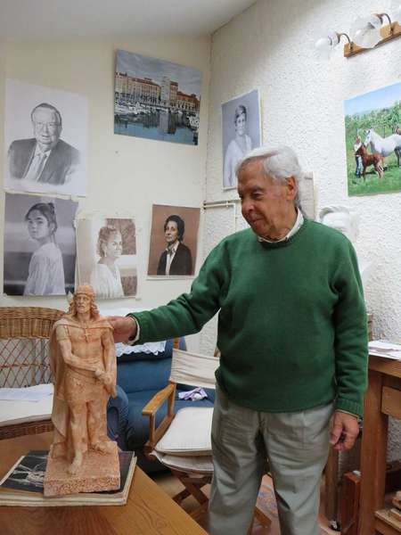Lo que quizás no tanta gente sepa es que el conocido monumento a Don Pelayo es obra de Félix Alonso Arena, un escultor y pintor piloñés muy sobresaliente en el arte figurativo, con múltiples obras conocidas repartidas por la geografía asturiana y que, a pesar de estar ya jubilado, continúa estrechamente ligado al arte, una gran pasión que tuvo desde que era niño y alrededor de la cual asentó su vida a base de constancia, estudios, esfuerzo, dedicación y trabajo. Actualmente vive en Sevares, en una preciosa casa llena de luz donde tiene un pequeño estudio en el que pasa la mayor parte de su tiempo, dedicado a su pasión artística. Allí recibió a EL FIELATO, con una gran sonrisa, para contarnos todos los detalles sobre la creación de la conocida estatua homenaje al rey astur, muy presente en el cartel de la 82 edición del Sella y sobre el que el escultor afirma que «es un cartel bueno, la estatua está muy bien replicada, y más teniendo en cuenta que está hecho con spray».
