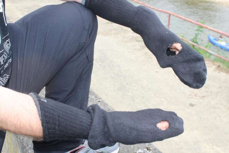 Los agujeros que quedaron en los calcetines del pescador tras los sucesos narrados en el río Piloña