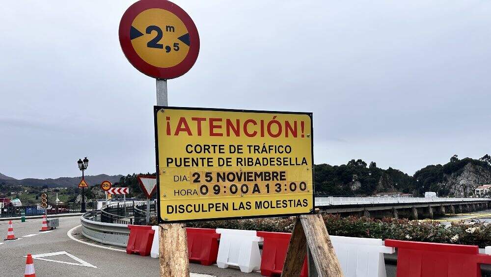 Ribadesella volverá a vivir mañana, martes 25 de noviembre, un nuevo corte al tráfico rodado en el puente de Ribadesella entre las 9h y las 13h. Una medida que, en esta ocasión, no ha contado con la comunicación oficial por parte del Ministerio de Transportes y de la que los vecinos se han enterado, fundamentalmente, leyendo el cartel de señalización situado al pie del puente.