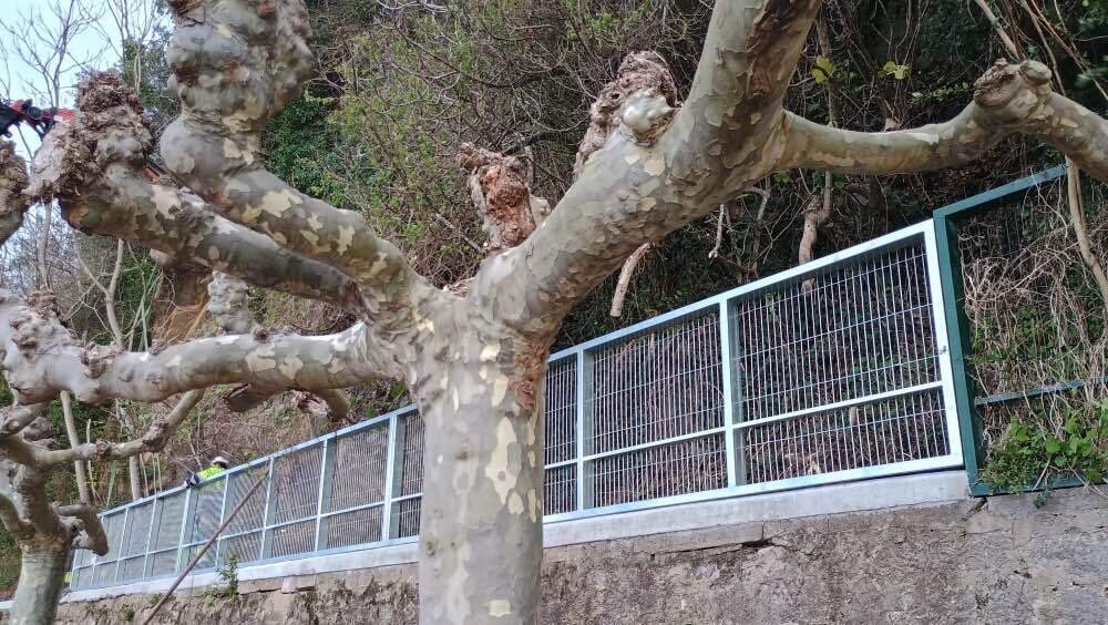 Las obras, que comenzaron con la limpieza del talud tanto en lo que respecta a la tala de árboles como en la retirada de maleza, consistirán en la instalación de una barrera de 1,3 metros de altura durante los 85 metros del paseo del puerto.