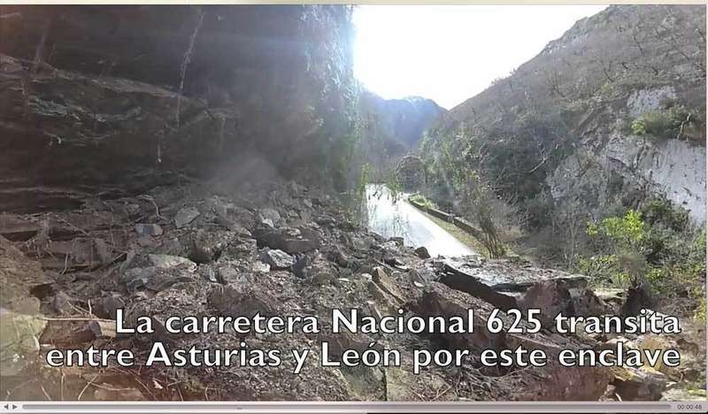 La carretera Nacional 625 (Carretera del Pontón) está cortada en pleno Desfiladero de Los Beyos, en territorio leonés, unos siete kilómetros más abajo de Oseja de Sajambre.
