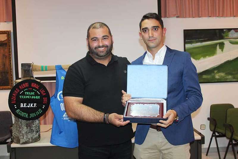 Un emocionado Naredo recogió del alcalde, Saúl Bastián, una más que merecida placa después de una brillante temporada. Además del título individual, el 9 de septiembre el saregano ya se había proclamado subcampeón de Vizcaya de corta de troncos en la modalidad de parejas.